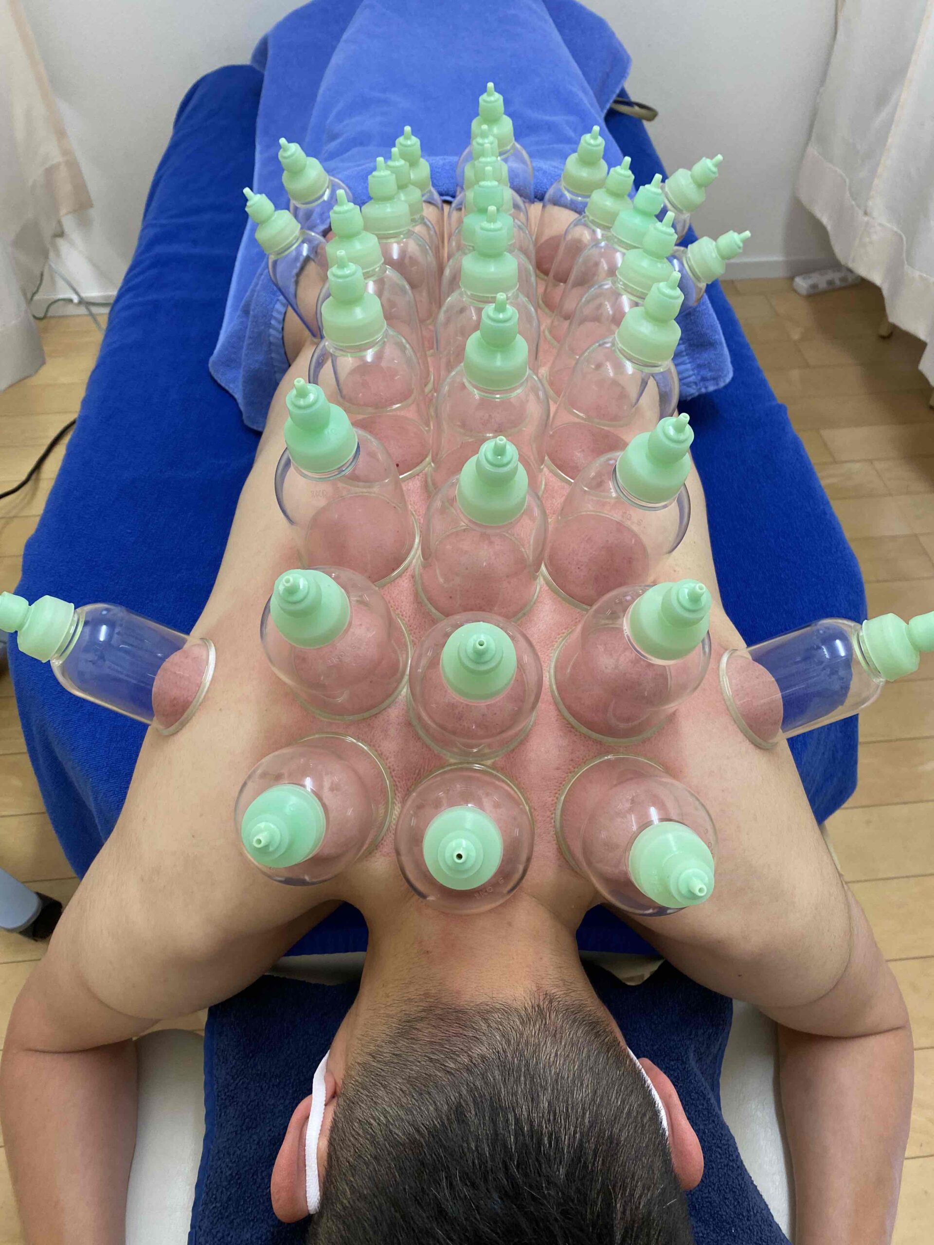 プラスチック製のカップを施術する体表にセットし専用ポンプでカップ内の空気を吸い上げ、陰圧にします。すると施術部位の皮下の毛細血管が拡張され、滞っていた血流を改善させ、コリや疲労物質を流してくれます。 下の写真はベッドの寝 … 続きを読む 吸玉療法(カッピング)好評頂いております。