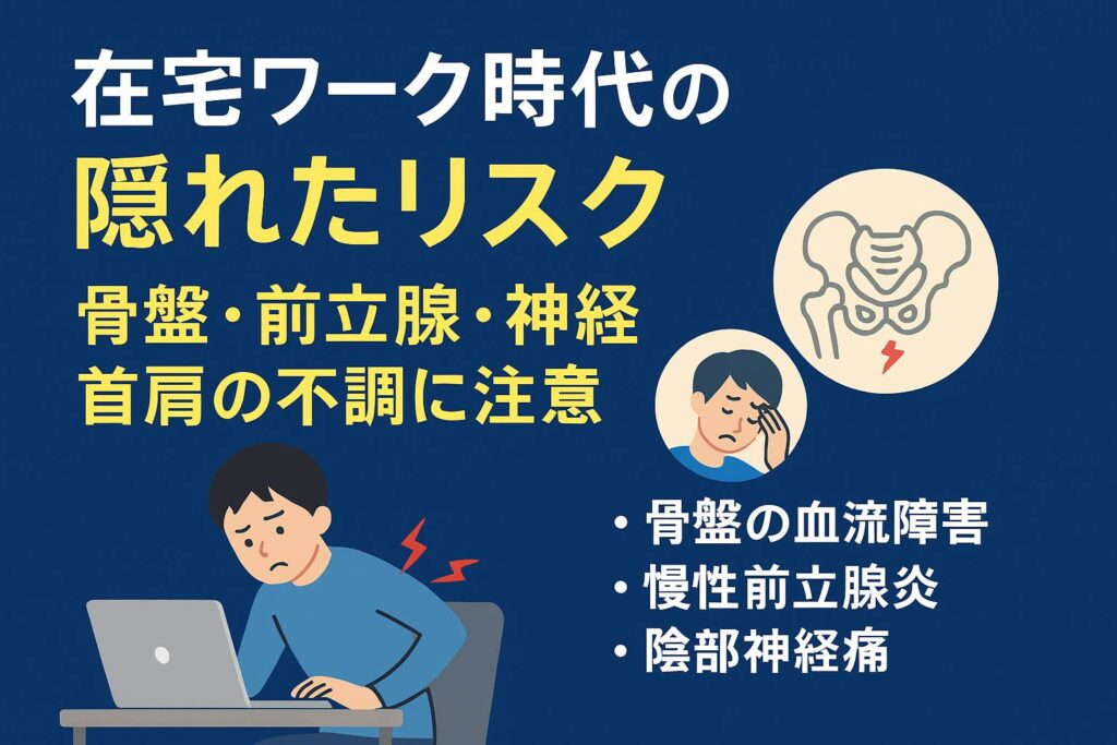 在宅ワークが定着して数年、通勤の負担が減った一方で「長時間座りっぱなし」「運動不足」「姿勢の乱れ」など、体に新たなリスクを抱える方が増えています。腰痛や肩こりはもちろん、慢性前立腺炎や陰部神経痛といった泌尿器系・神経系のトラブル、さらには自律神経の乱れによる不眠や食いしばりなど、思わぬ不調に悩むケースも少なくありません。
